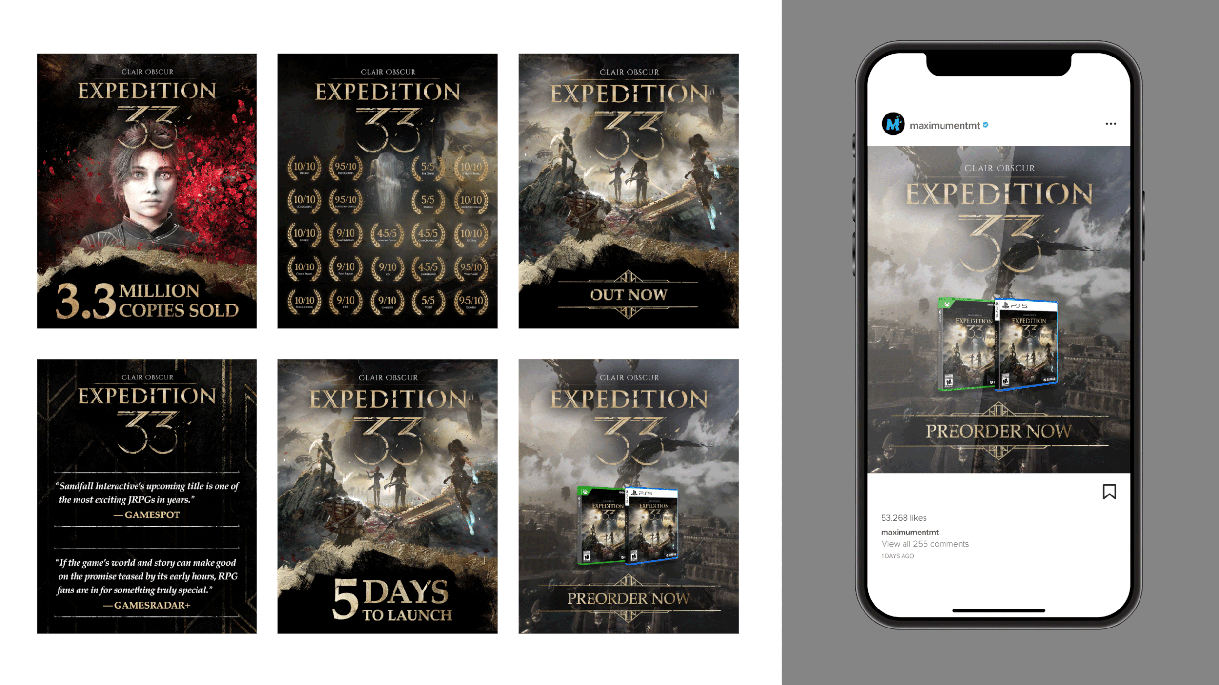 Create packaging and marketing assets that capture the painterly, fantasy-driven world of Clair Obscur: Expedition 33, while building excitement pre- and post-launch, driving sales for both the Lumiere Edition and Standard Editions.